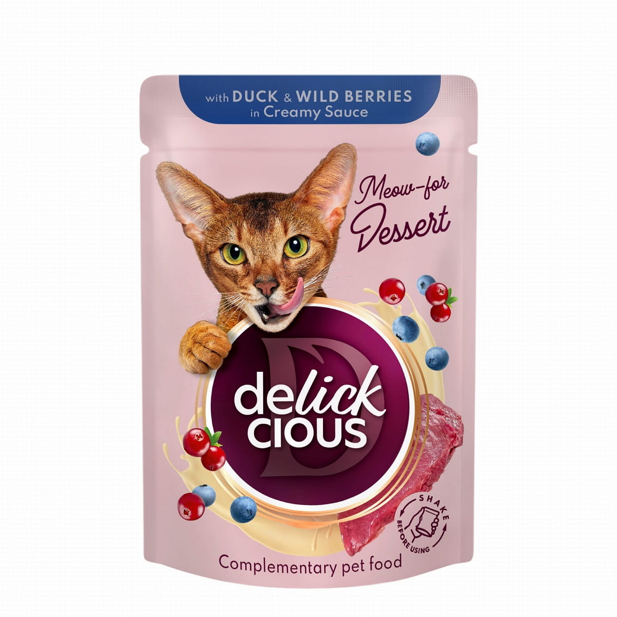 Mokra karma dla kota paski z kaczką i dzikimi jagodami w sosie 85g Delickcious