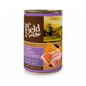 Mokra karma dla psa dorosłego – łosoś z kurczakiem i dynią 400g Sam’s Field