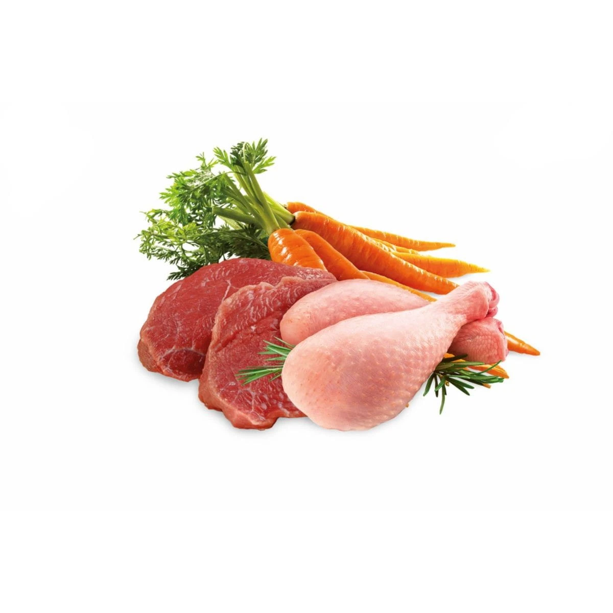Receptura oparta jest na 66% prawdziwego mięsa, co zapewnia wysoką zawartość białka niezbędnego do budowy mięśni oraz prawidłowego wzrostu. Połączenie kurczaka i delikatnej cielęciny gwarantuje wysoką smakowitość i dobrą przyswajalność.