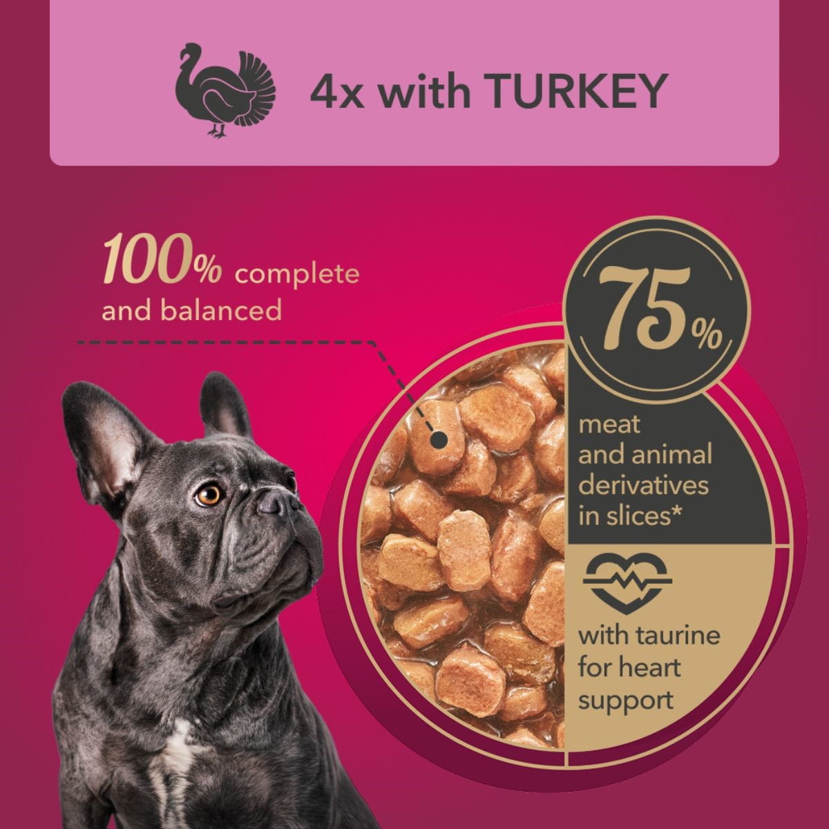 - Mięso i produkty pochodzenia zwierzęcego 75% Mięso i produkty pochodzenia zwierzęcego w kawałkach (4% indyka) Ryby i produkty rybne