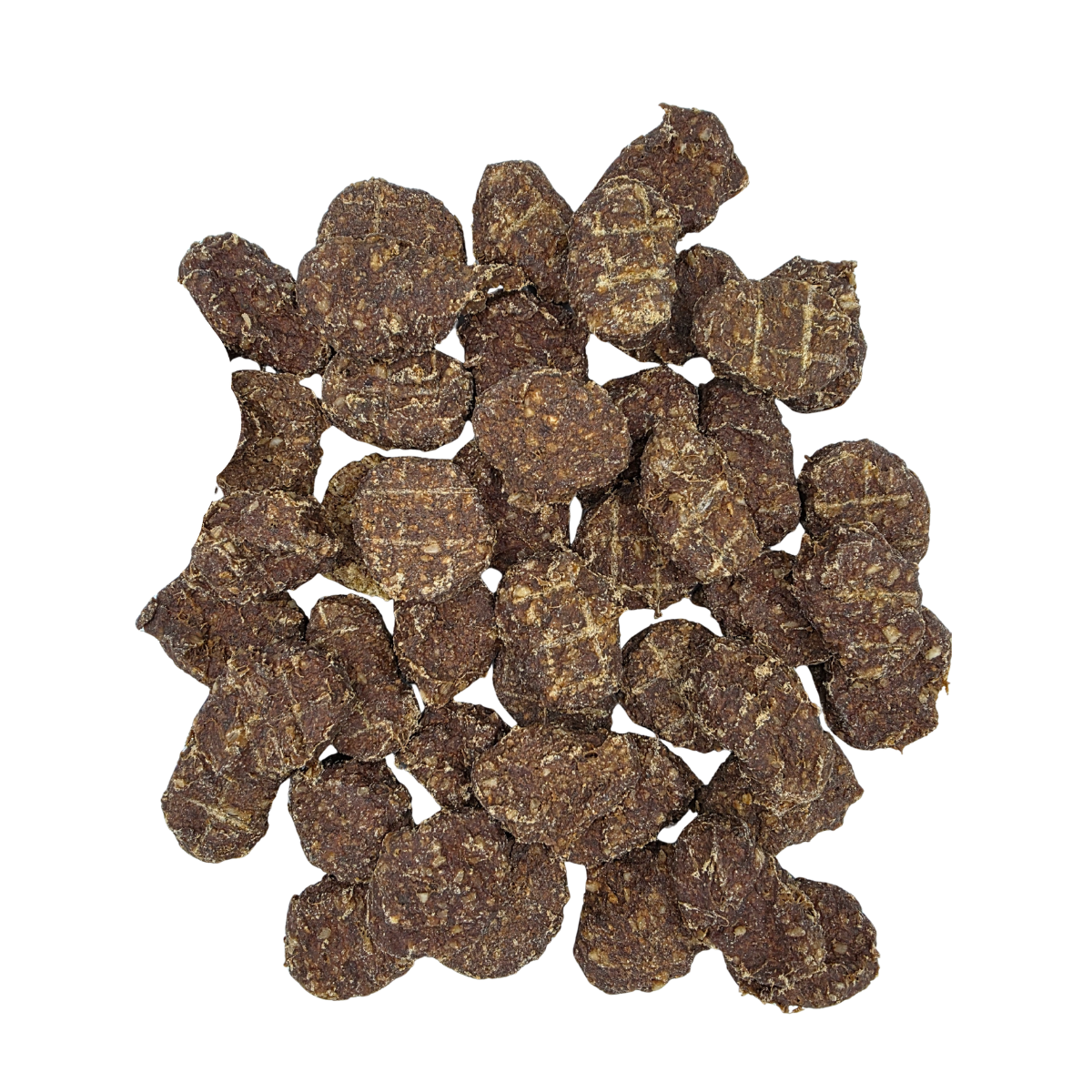 Kąski mają miękką, elastyczną konsystencję, dzięki czemu można je łatwo podzielić na mniejsze porcje. Są doskonałe do szybkiego podania podczas spaceru, sesji treningowej czy zabawy. Silny, naturalny aromat dziczyzny dodatkowo pobudza zmysły psa i zwiększa jego motywację do działania - to przysmak, który działa nie tylko jako smakołyk, ale też jako skuteczne narzędzie wychowawcze.