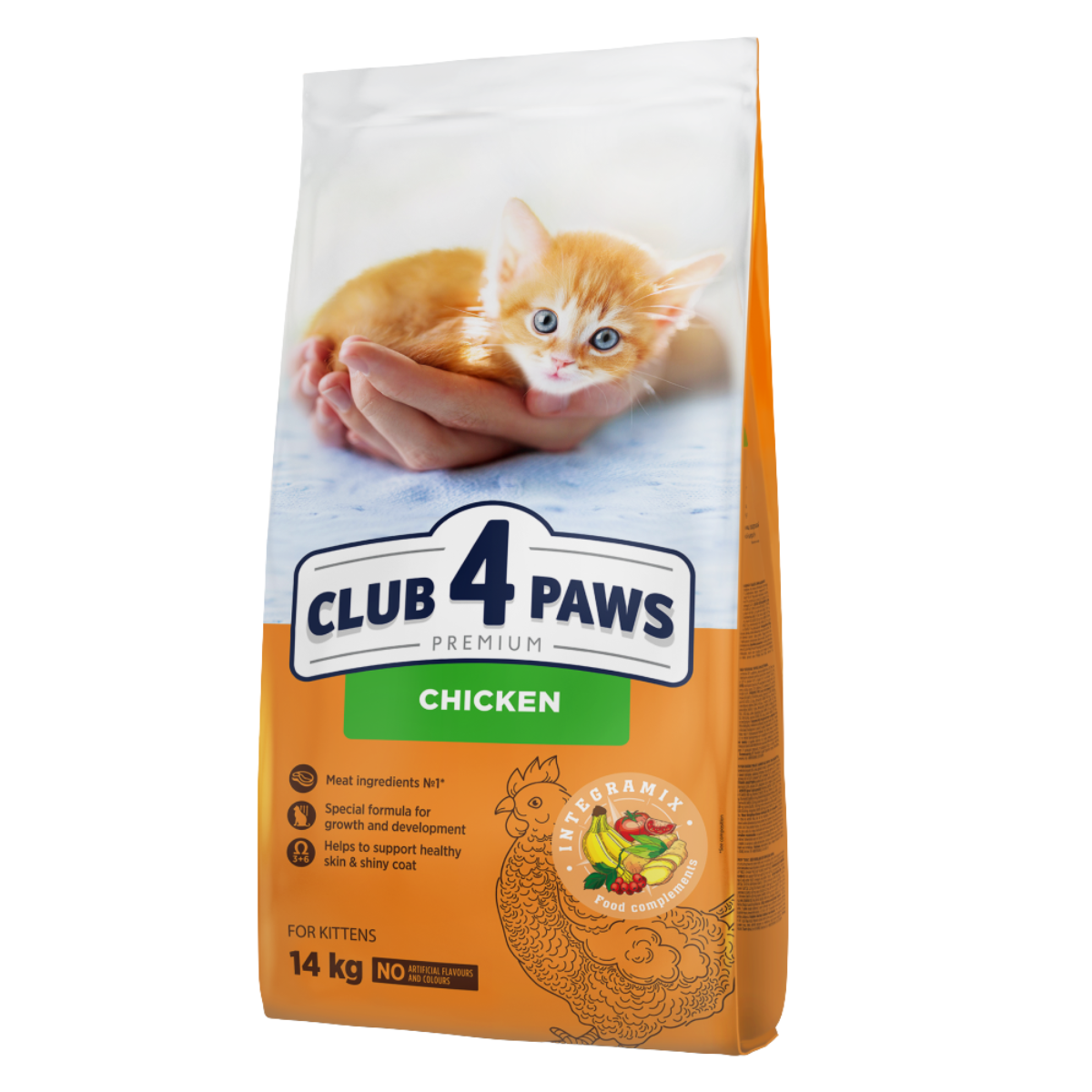 CLUB 4 PAWS Premium Kitten z kurczakiem to sucha karma klasy premium stworzona specjalnie z myślą o kociętach. W pierwszych miesiącach życia młody organizm potrzebuje wyjątkowego pożywienia - bogatego w białko, witaminy i minerały, które wspiera intensywny wzrost, rozwój mózgu i układu nerwowego. Dzięki starannie opracowanej recepturze karma nie tylko zaspokaja potrzeby żywieniowe kociąt, ale także dba o ich odporność, energię oraz dobre samopoczucie każdego dnia. To wybór, który łączy zdrowy skład, naturalny smak i praktyczne opakowanie, idealny dla opiekunów chcących zapewnić swoim pupilom najlepszy start w dorosłość.