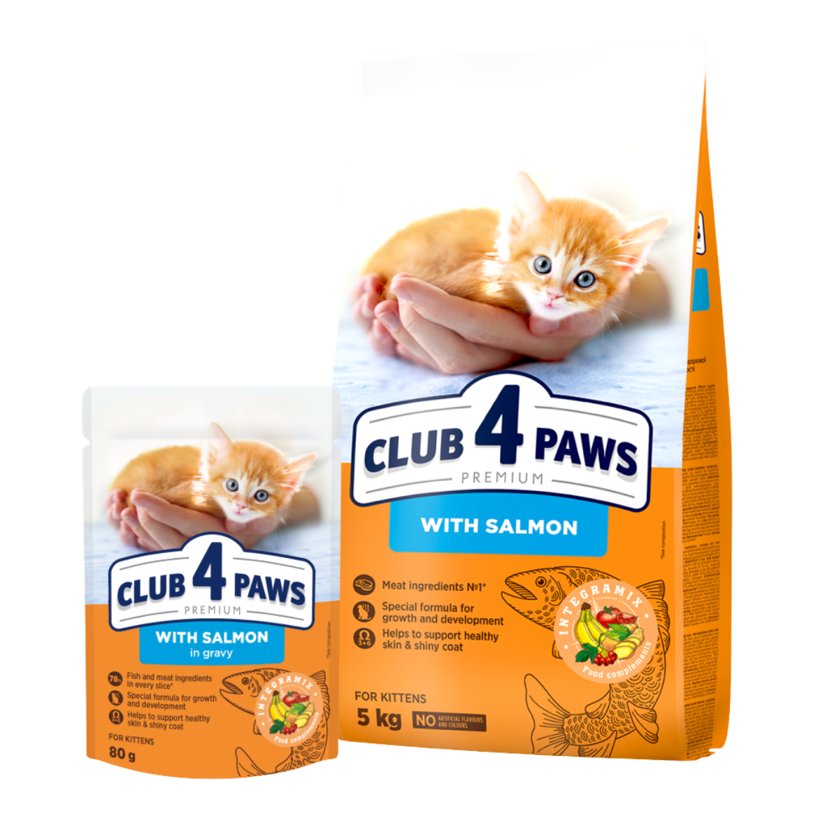 Club 4 Paws Premium Kitten z łososiem to sucha karma stworzona specjalnie dla kociąt w kluczowym okresie wzrostu. Smakowita, lekkostrawna i bogata w cenne składniki odżywcze - zapewnia zdrowy rozwój, wspiera odporność i dba o lśniącą sierść Twojego małego pupila.