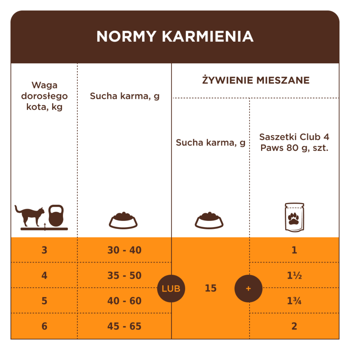 - Kot o masie 4-5 kg 55-75g