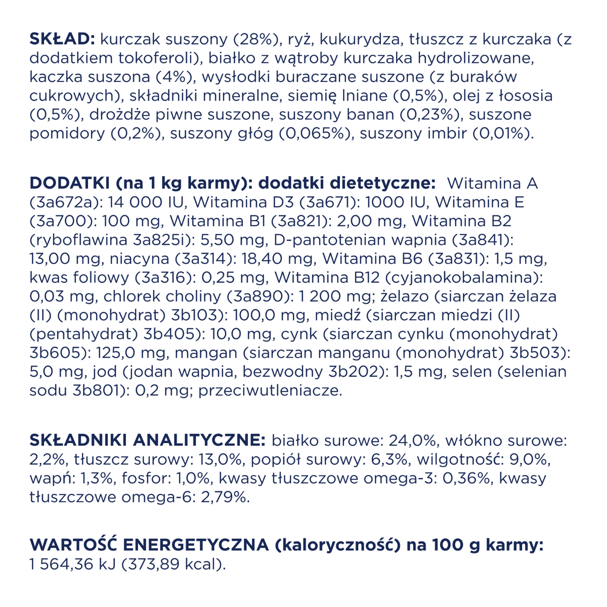 - Mięso i produkty pochodzenia zwierzęcego Odwodnione białko kurczaka 26% Tłuszcz drobiowy (z dodatkiem tokoferoli) Odwodnione białko kaczki 4% Hydrolizowane białko zwierzęce