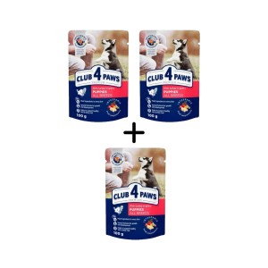 Wybierz CLUB 4 PAWS Premium mokrą karmę dla szczeniąt i zadbaj o zdrowy rozwój swojego pupila od pierwszych dni życia!